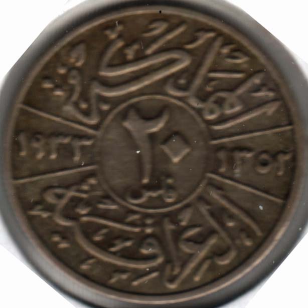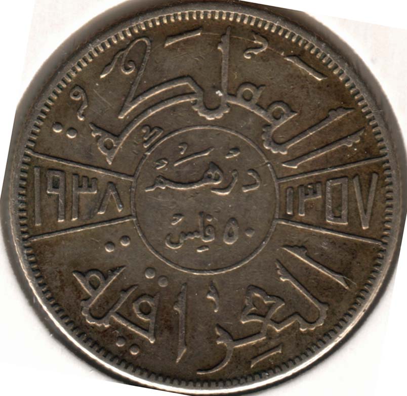 | 20 Fils (silver) | 1938-I | 106 | Ghazi I | F+ | 2.25sold |