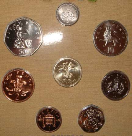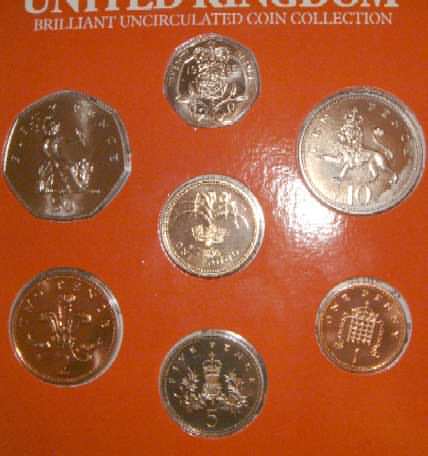 1984 Mint Set (Uncirculated) £1 Scottish Thistle for Scotland 50p,20p,10p,5p,2p,1p,½p Last year of issue and only issued in sets.In official issue foldout flat pack (Blister Pack) |