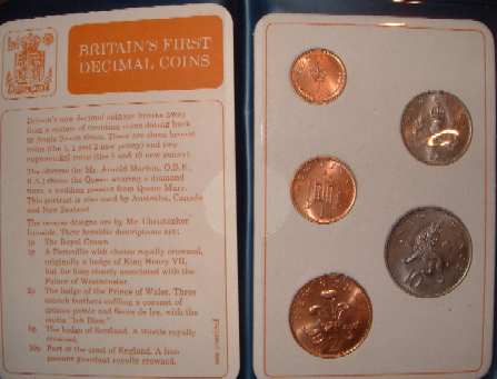 1968 - 1971 Britain's 1st Decimal Coins 10p , 5p, 2p, 1p, ½ Pence. In blue plastic wallet of issue Royalmint |